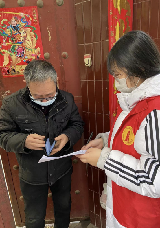 2022年寒假期间,根据疫情防控形势的需要,袁榕蔚同学报名参加了志愿服务工作,在当地疫情防控一线西夏镇王庄行政村,接受疫情防控知识培训后,她成为一名老员工志愿者,积极投身疫情知识宣传、人员摸排等工作,每天挨家挨户上门宣传疫情防控知识,耐心做相关政策的解释说明工作。