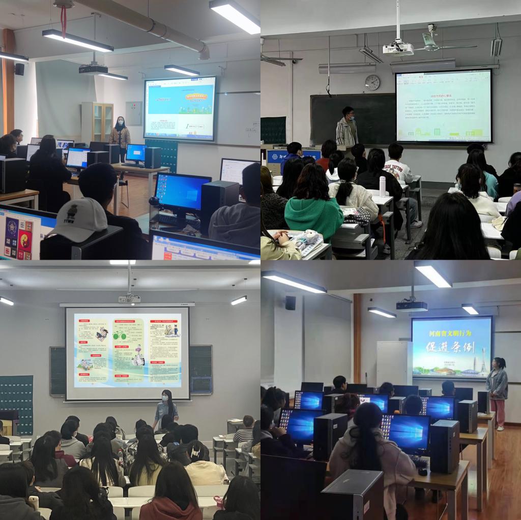 辅导员王鸿飞老师说,公民是文明创建的主体,是文明行为的实践者、推动者、维护者。每一个公民都应该讲文明、尊道德、守法律,推动文明行为条例落实落细落小。倡文明树新风,维护公共秩序、爱护环境、文明生活、文明出行、文明旅游、文明从自身做起、从日常点滴抓起、从家庭抓起,自觉规范言行,为文明郑州、美丽郑州贡献力量。
