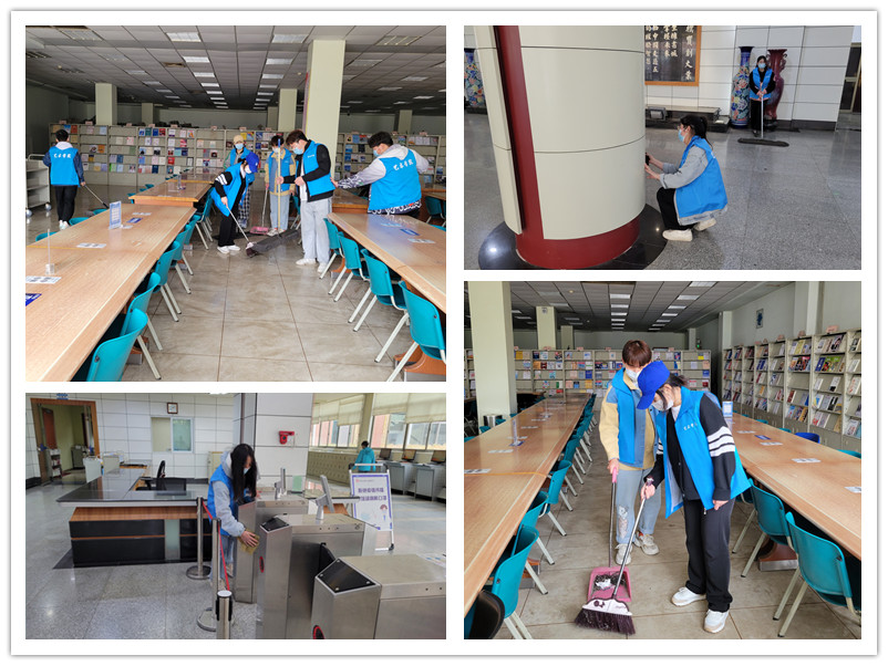 大家着蓝色志愿者服装准时在图书馆大厅集合。活动负责人对参与活动人员进行简单分组后,全体志愿者就分别前往各自分配到的场地开展工作。活动过程中,大家听从图书馆老师的安排,擦书架、摆放书籍、整理桌面地面……大家齐心协力,互帮互助,在劳动过程中体现志愿者无私奉献的精神。最后,通过大家的共同努力,图书馆干净整洁,大家顺利完成此次图书馆志愿服务活动。