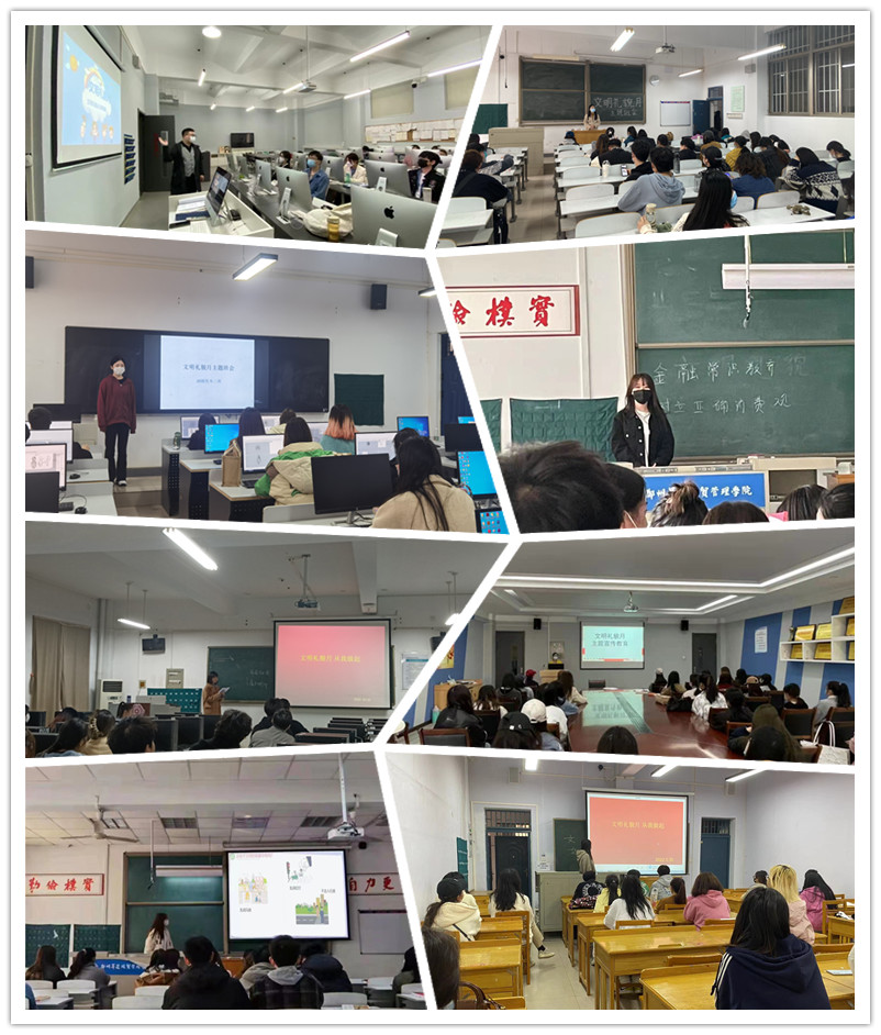 辅导员老师们在各班级召开以“文明礼貌,从日常做起”为主题的文明礼貌月动员班会。会上,辅导员老师们首先向员工们详细讲解了此次活动内容,一是遵守疫情防控政策,公共场所佩戴口罩。二是落实文明就餐,实行餐厅光盘行动。三是贯彻“厕所革命”,告别不文明陋习。四是绿色环保,无特殊情况不乘坐电梯。五是遵守交通礼仪,不挤占公共道路。其次,各老师们根据所带员工的专业特色,用一个个生动的案例,有针对性的启发大家可以开展哪些特色活动,号召班级员工积极参与到活动当中去,增强班级员工文明意识,争当文明礼貌先进标兵。同学们根据以往活动经验,结合此次活动主题,展开了热烈的讨论,有员工建议拍摄原创视频,在给同学们带来笑声的同时,教育员工文明礼貌的重要性,有员工建议手绘插画,警醒员工疫情期间,文明防疫等。