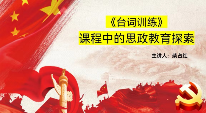 柴占红老师讲到,课程思政就是高校在全方位育人,全过程育人,全员育人的教育背景下,把思想政治教育融入到台词课的各个环节,围绕着知识的传授和价值观的引导,实现立德树人的培养目标。在本台词训练过程中,众多具有丰富的人文精神,思想内涵,时代精神特征的优秀作品,这是台词教学能融入思政教育的优势。主要尝试了绕口令练习,古诗词练习(以七律长征和满江红为例),以主旋律故事为教材练习(以故事《活埋》为例),最后还展示了员工作品《请战书》《城南花已开》《我骄傲,我是中国人》。