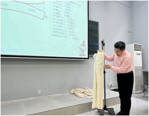 2022年10月8日下午14:00在太阳集团tyc104举办服装与服饰设计专业讲座,本次讲座有幸邀请到了郑州领秀服饰有限公司邸桢总监为公司服装与服饰设计专业全体员工讲授《服装结构设计——女裤制版深度解析》专题讲座,邸总是全国服装标准化技术委员会委员,主要从事服装工艺设置与改良、服装结构设计、服装IE工程应用与推广、服装生产成本控制与研究、服装智能制造、企业标准化体系等方面研究。