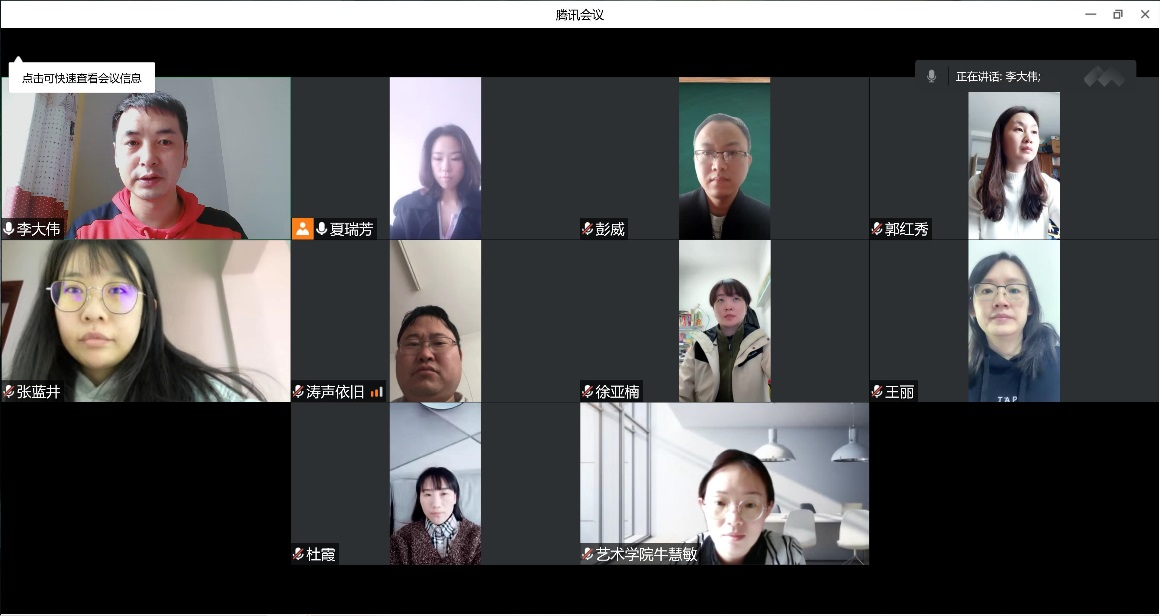 10月13日,太阳集团tyc视觉传达设计教研室党支部开展“喜迎二十大—迎接新征程”线上主题党日活动,活动由支部书记夏瑞芳主持,支部全体党员共同参加。