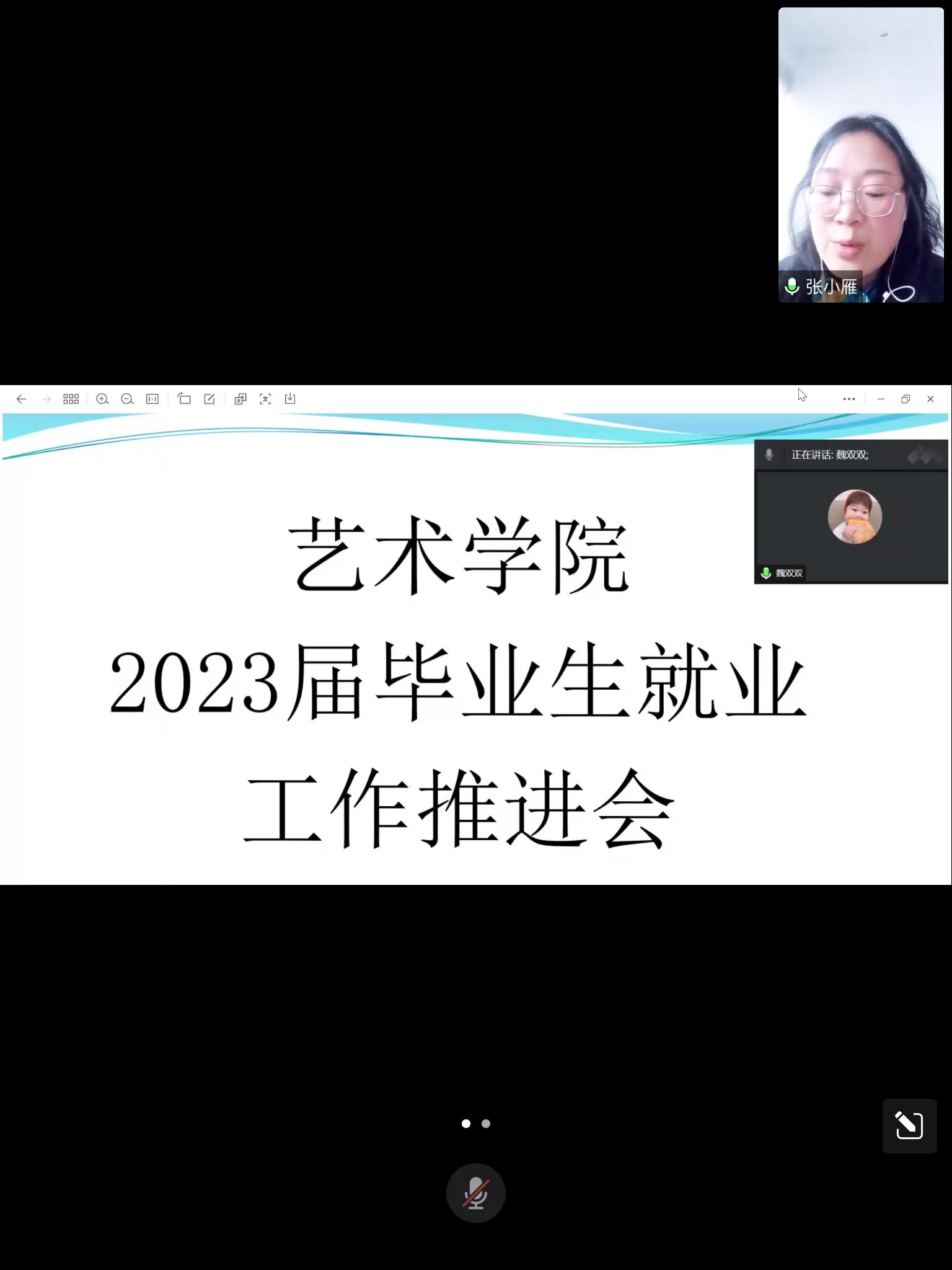 12月27日下午15:00,太阳集团tyc召开2023届毕业生线上就业工作推进会。公司党委书记张小雁、就业专员郭称心、辅导员魏双双和全体毕业班辅导员老师参加了此次会议。会议由党委书记张小雁同志主持。
