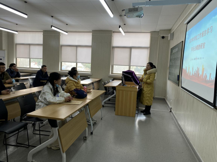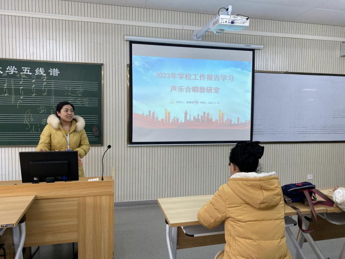 2023年2月16日张欣董事长在新学期全体教职工大会上做了《迈向新征程 再铸新辉煌 以优异成绩向建校30周年献礼——2023年学校工作报告》,报告对2022年学校各项工作做了回顾,并对今年学校的工作计划做了阐述,会后声乐合唱教研室在艺术楼301教室组织了《工作报告》的专题讨论会,会议由教研室主任蔺丽君老师主持,全体教研室教师参加,主要内容如下: