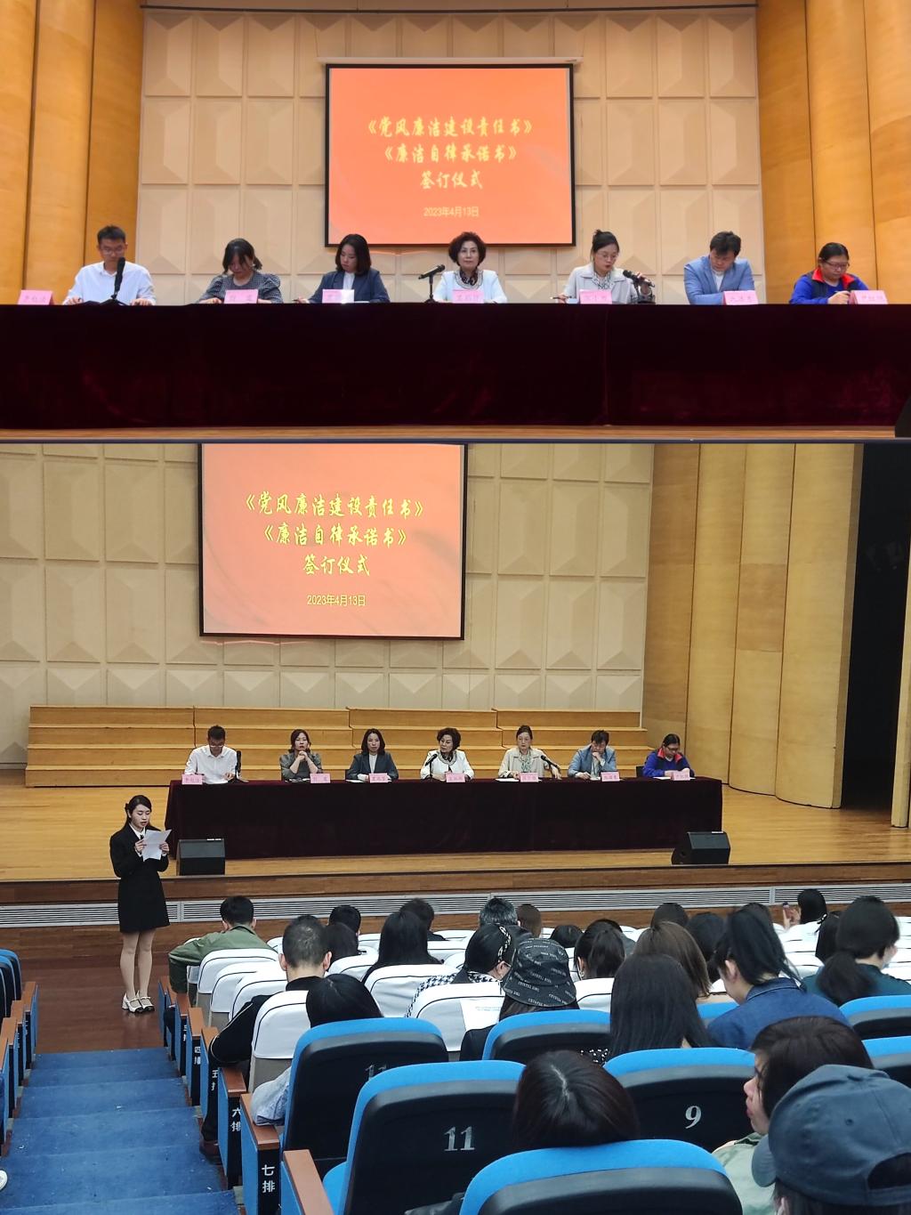 公司党委书记张小雁首先传达了公司党委2023年党建暨全面从严治党工作会议的精神。张书记强调,2023年是贯彻落实党的二十大精神的开局之年,是后疫情时代的第一年,也是公司校庆三十周年。希望大家都能聚焦个人主责、扎实开展所管辖范围内人员关于理想信念、廉洁自律、能力素质各项教育。围绕全面从严治党新要求,严格落实党组主体责任,强化党建引领,深化理论学习;强化党风廉政建设,从严从实开展以案促改,创建清廉校园。接着,行政人员代表、专职教师代表、辅导员代表宣读了《廉洁自律承诺书》。随后,学院领导班子成员签订《2022年度党风廉洁建设责任书》,并公开承诺:在工作中坚持公私分明,坚持崇廉拒腐败,坚持尚简戒奢,崇尚吃苦在前,党员干部承诺要注重廉洁从政、用权、修身、齐家,自觉树立良好风范,提升思想道德修养。学院全体教职工签署《廉洁自律承诺书》,并公开承诺:杜绝一切有损教职工职业队伍形象的行为,坚持身正为范,服务育人,要以“四有”好教师为标准,将师德师风建设落到日常的工作中,从自身做起,做师德表率。