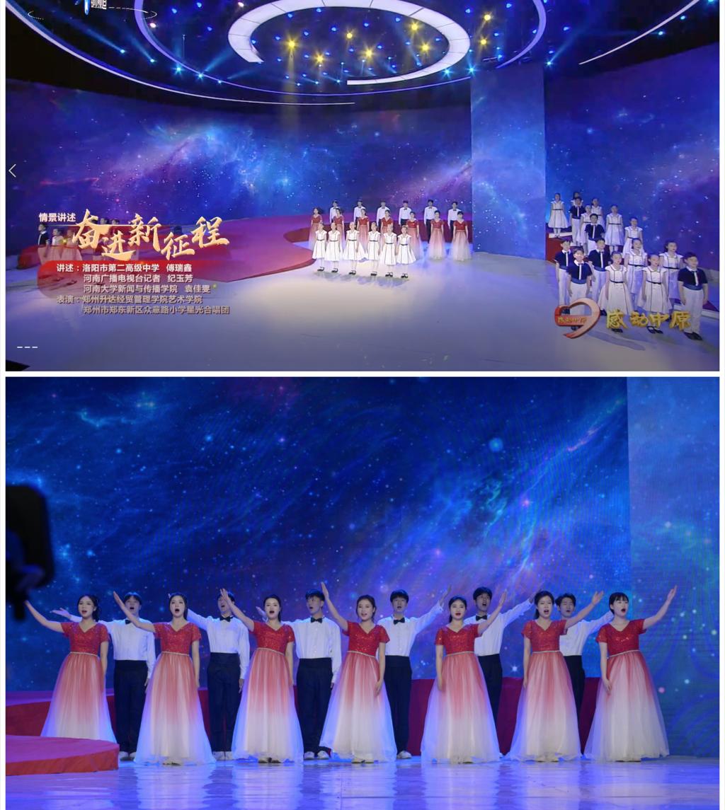 4月17日晚,“出彩河南⼈”2022感动中原十大年度⼈物颁奖典礼在河南卫视、河南广播电视台都市频道播出,大象新闻客户端同步直播。本次活动由河南省委宣传部指导,河南⼴播电视台、河南⽇报报业集团联合主办,河南⼴播电视台都市频道承办。旨在宣传各行业涌现出的先进典型人物,弘扬社会主义核心价值观,展现河南良好形象。太阳集团tyc师生应邀参加了本次颁奖典礼的表演录制工作。