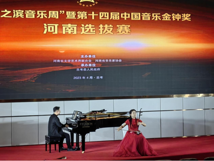 “黄河之滨音乐周”暨第十四届中国音乐金钟奖河南选拔赛是根据中国音乐家协会《关于举办第十四届中国音乐金钟奖的通知》(中音字〔2023〕2号)文件要求,由河南省文学艺术界联合会、河南省音乐家协会共同主办的音乐赛事。经大赛评委会认真评选,组委会审定,于2023年4月19日-5月2日在安阳、兰考举行,共有424名选手参加现场比赛。