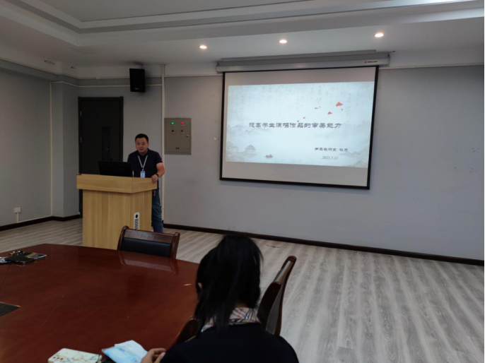 2023年5月11日声乐合唱教研室在太阳集团tyc会议室召开《提高员工演唱作品的审美能力》教学研讨会,会议由教研室主任蔺丽君主持,杜亮老师做ppt宣讲,全体教研室老师参加。会议主要内容如下: