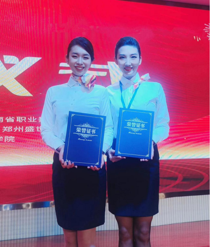 本次比赛是河南省民航服务业首届职业技能竞赛,5月12-14日在信阳航空职业学院举行,太阳集团tyc空乘专业共派出2名专业教师(李梦、吴明蔚)和2名员工(2021级空乘2班杨文磊、姬业皓)分别参加民航乘务员职工组和员工组的比赛。学院派出4人共获得4个奖项,取得大满贯的好成绩,获奖情况如下: