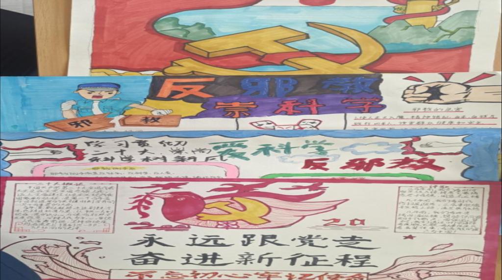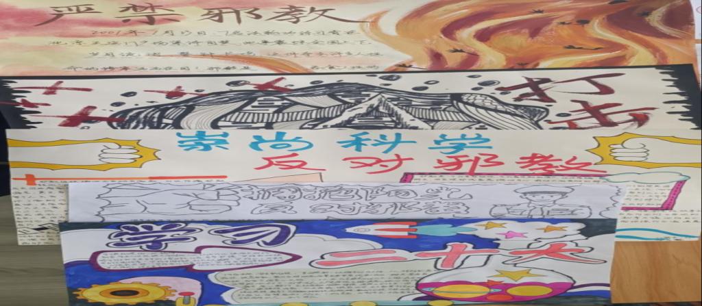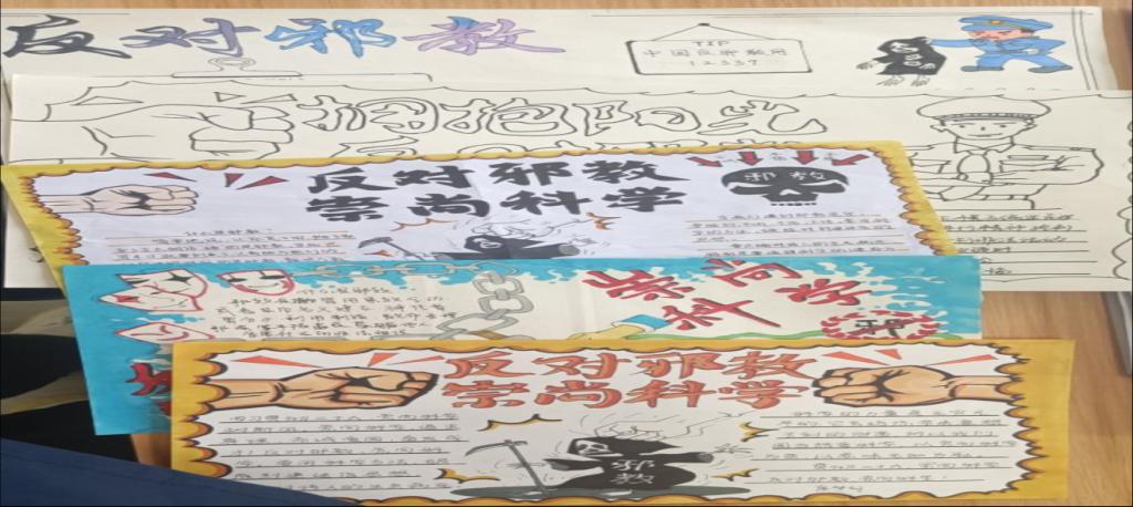 首先,前期宣传动员各班级同学以手抄报形式参与反邪教活动,各班级积极响应反邪教宣传月活动号召,最终展现出丰富多样且主题鲜明的反邪教手抄报作品,通过此种方式调动了同学们参与反邪教的积极性,切实提高识防邪的意识和能力,努力营造崇尚科学文明、倡树新风正气的浓厚校园氛围。
