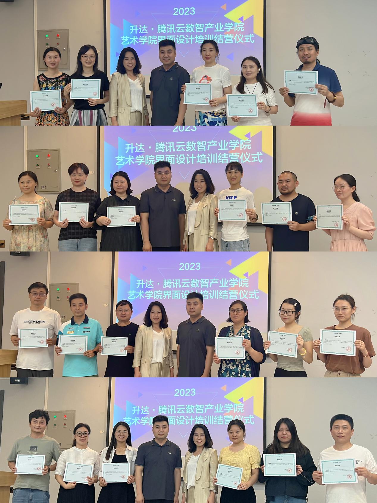(夏经理和吴经理为结业教师颁发证书并合影留念)