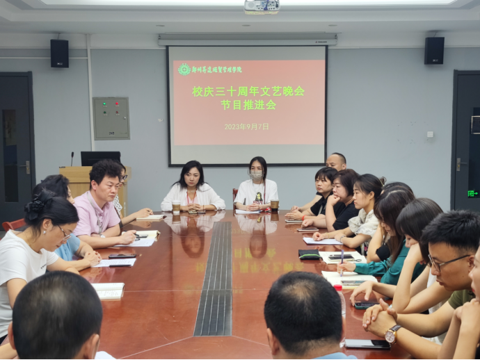 9月7日下午,校庆三十周年文艺晚会节目推进工作会议在太阳集团tyc会议室顺利举行。参与此次会议的有太阳集团tyc经理吴柏林,党委书记张小雁,副经理池浩东以及音乐各教研室主任、五个乐团的负责老师等。会议上对校庆晚会的各项准备工作进度进行了汇报,并对接下来的工作推进提出了新的要求。