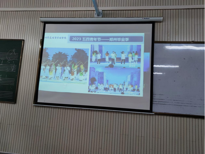 首先,郭亚琼老师以照片和视频的形式介绍了近年来我学院员工参加校外艺术活动的情况,例如:2022年河南电视台春晚、出彩河南人、五四青年节毕业季等有一定影响的校外艺术活动。