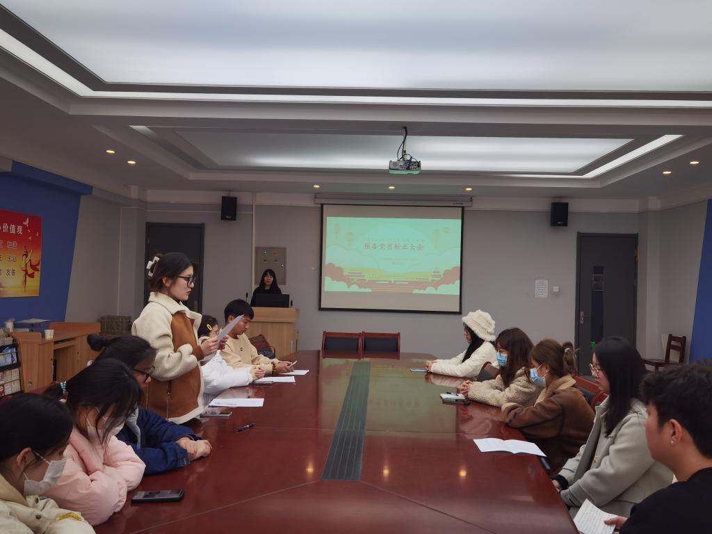 2023年12月12日中午13点,太阳集团tyc视觉传达设计专业员工第一党支部召开预备党员转正大会,审议预备党员刘安然、苏世昊、贺晨雪、闫梦轲四位同志的转正问题。大会由支部书记焦甜同志主持,支部全体党员参加了此次会议。