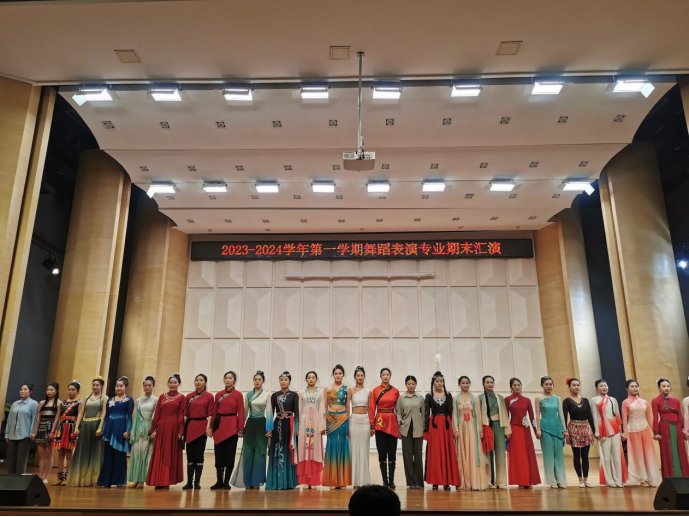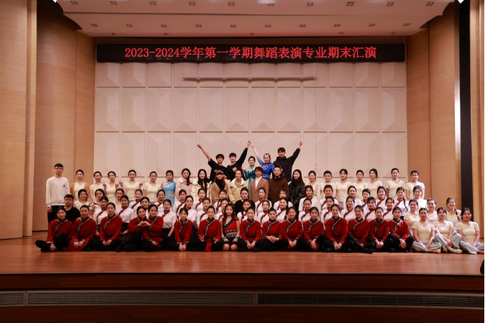 2023-2024学年第一学期舞蹈表演专业期末汇演于12月29日在音乐厅举办,本次汇演由舞蹈教研室全体教师和舞蹈表演专业2022级本专科、2021级本专科和2023级专升本全体员工参加。