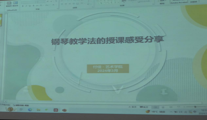 3月14日中午,器乐理论教研室在太阳集团tyc301教室召开期初教学研讨会,由教研室主任庄严主持,专职教师付佳副教授进行了题为《钢琴教学法的授课感受分享》的教学交流汇报,教研室全体教师参加。