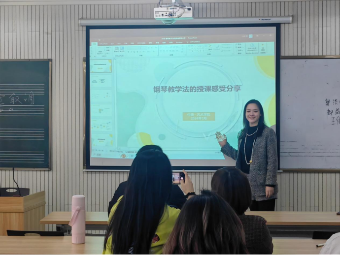 付佳副教授首先介绍了《钢琴教学法》课程的教学概况以及课程培养目标:课程旨在把曲目中的重点、难点、易错点等给员工们分析讲解,让员工较为全面的学习音乐理论知识和演奏技巧,同时培养他们的教学能力和音乐鉴赏能力。