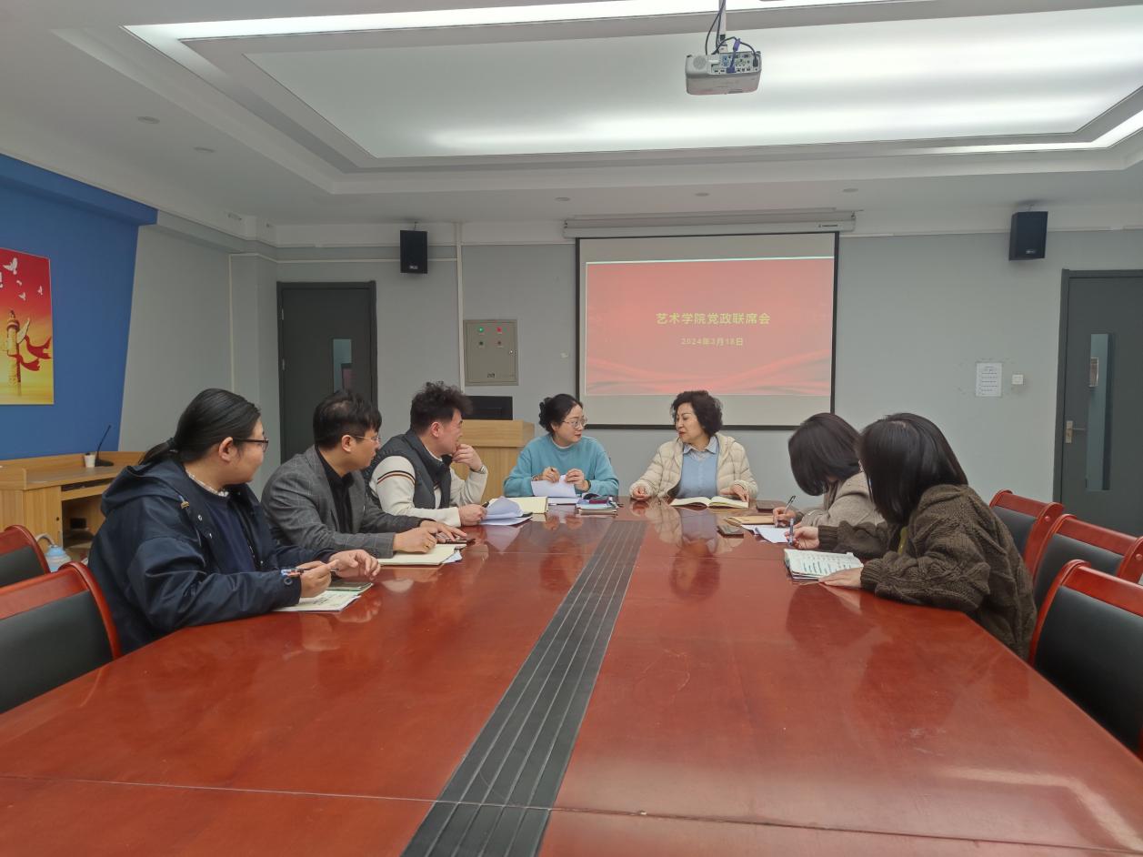 太阳集团tyc于3月18日在艺术楼414会议室召开党政联席会议,学院领导班子成员参加了本次会议。