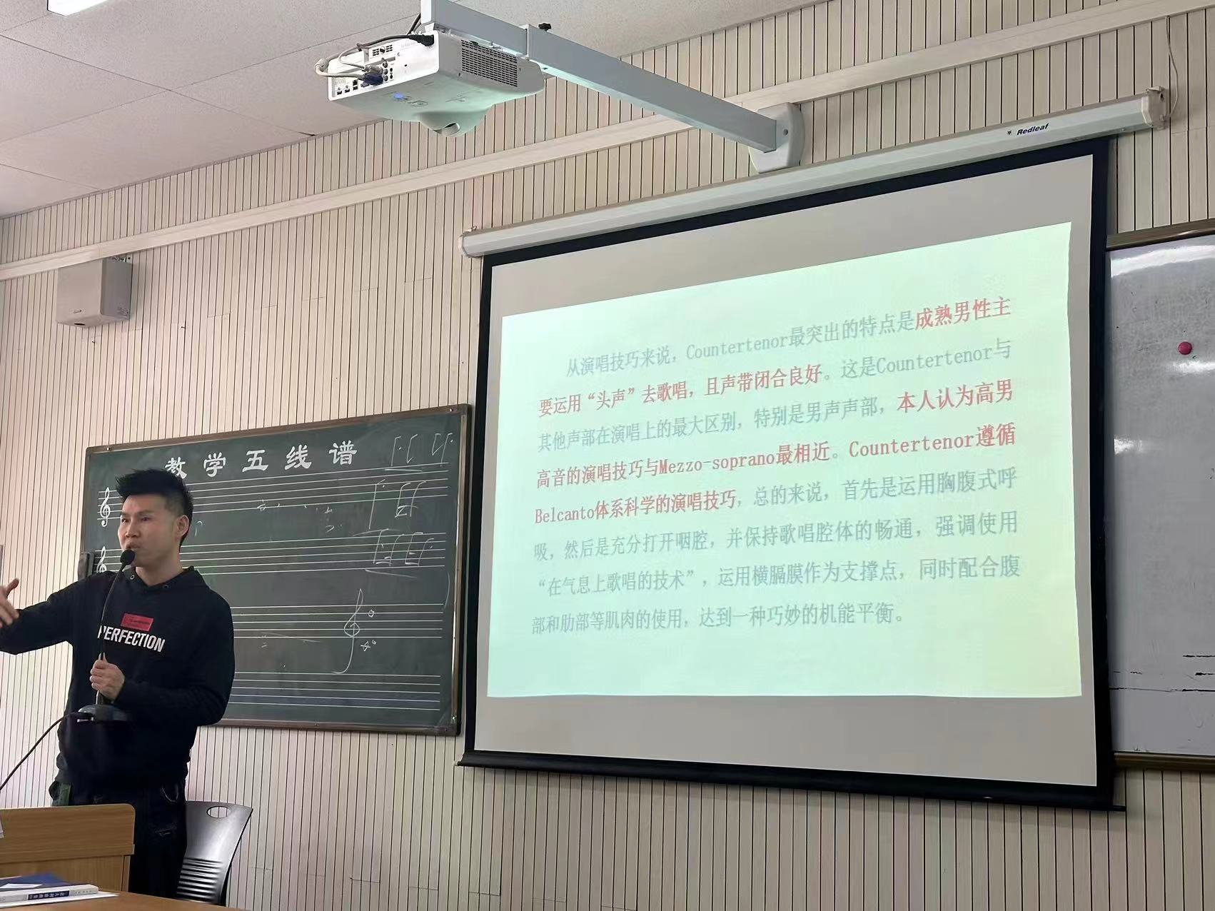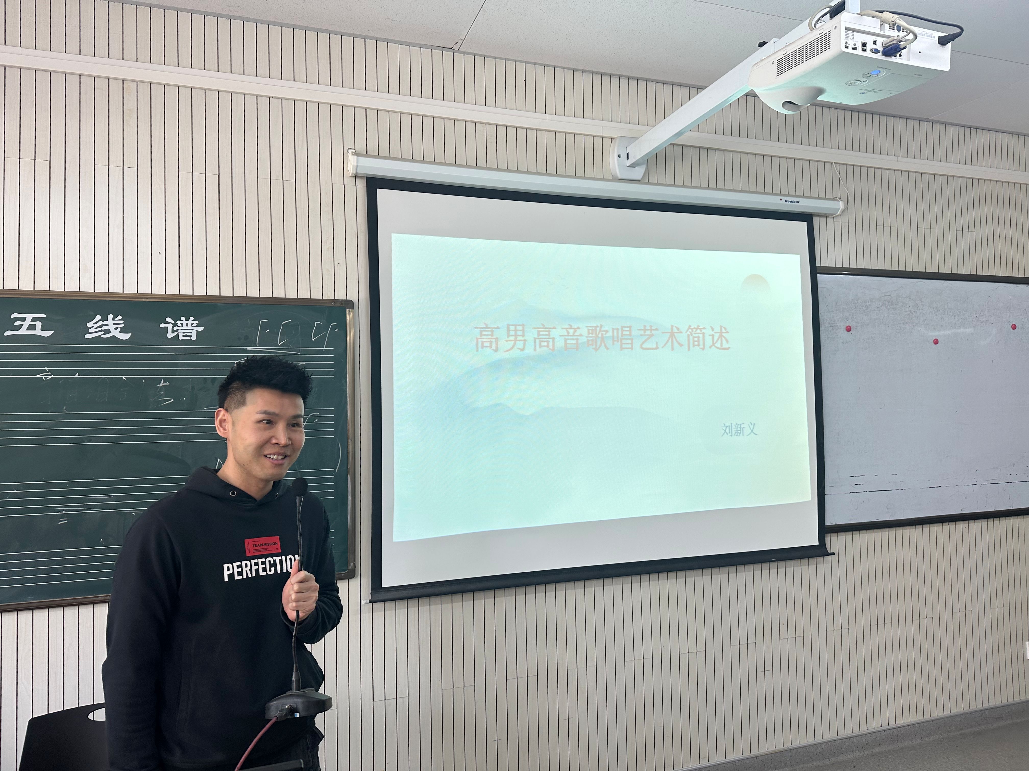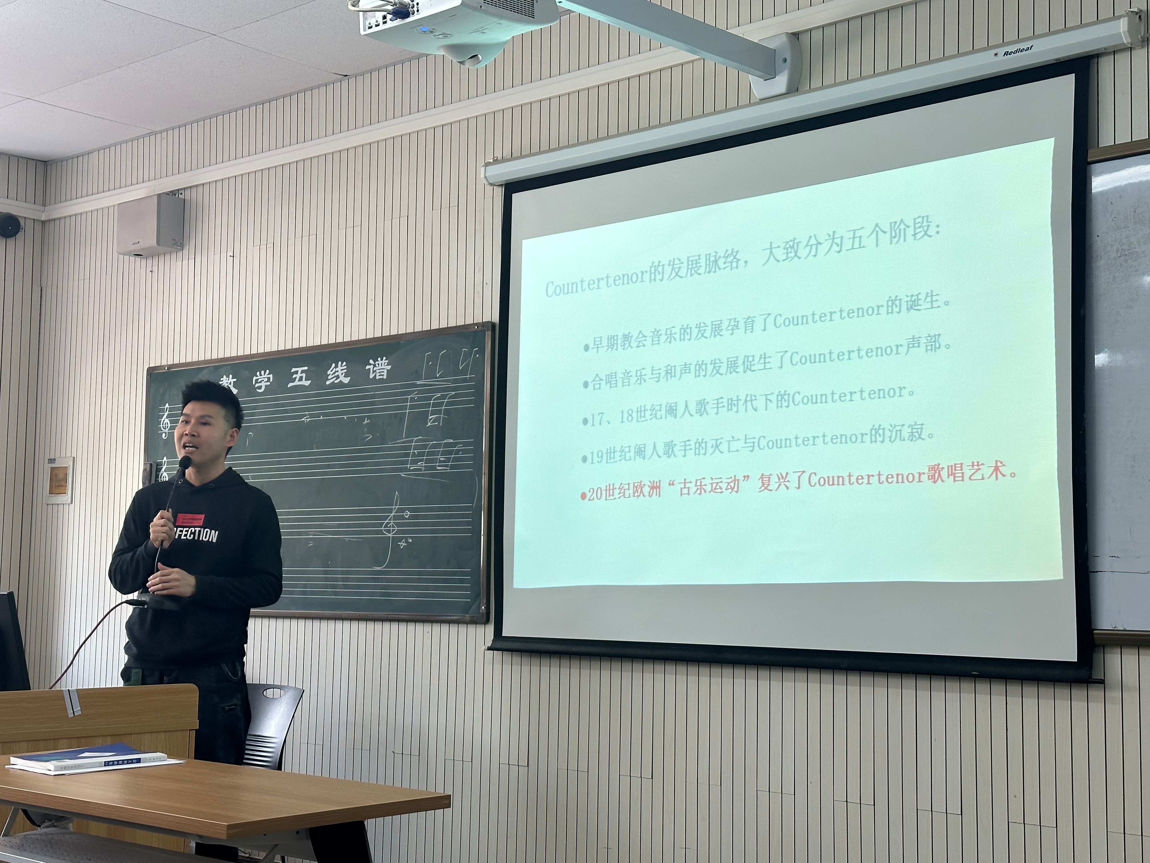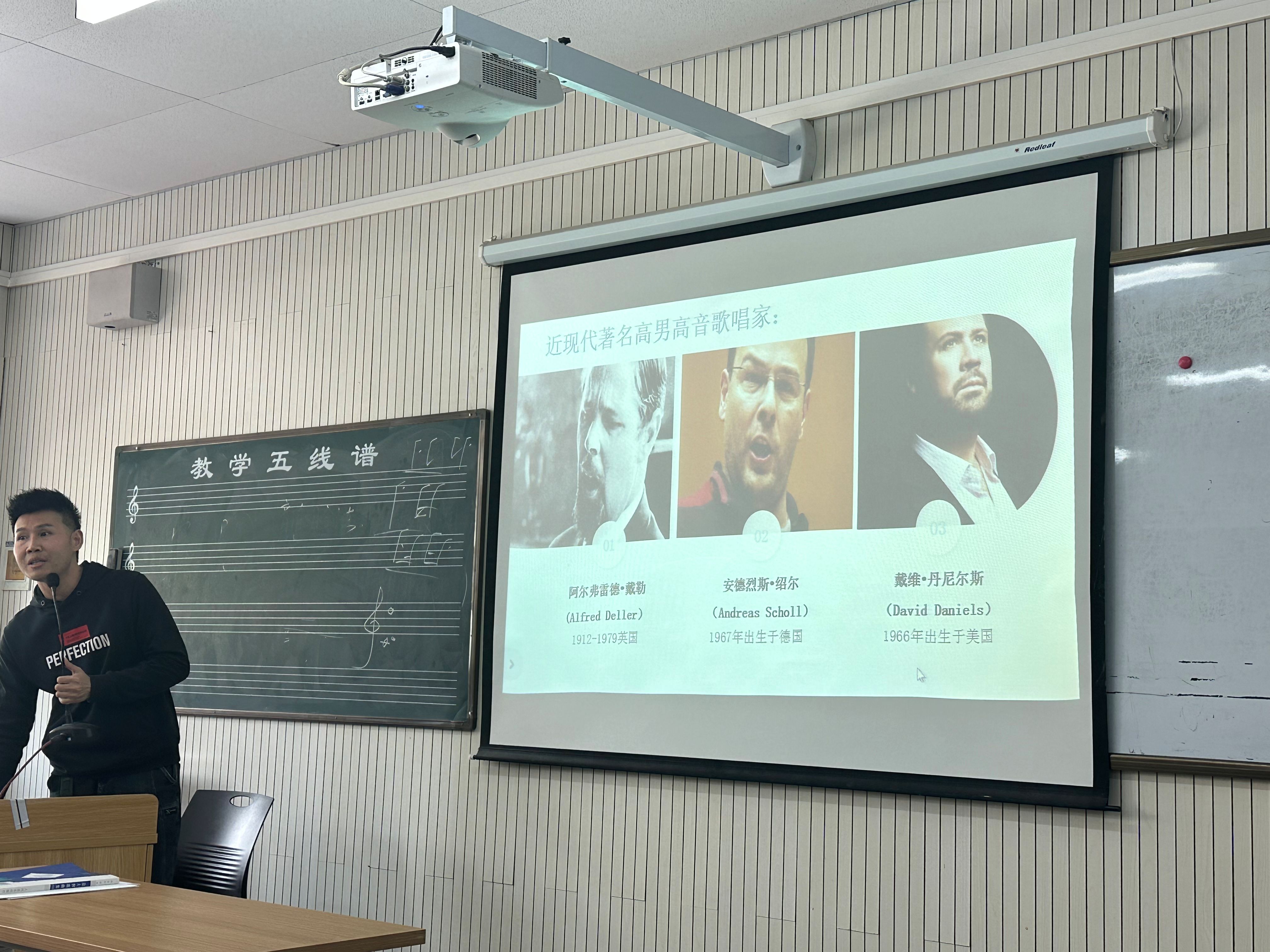 在这次教研活动中,刘新义老师首先介绍了高男高音这一声乐类型的特点和历史背景。他指出,高男高音作为男高音中的一种特殊类型,具有较高的音域和充满激情的表现力,常常在歌剧和声乐音乐中扮演着重要角色。