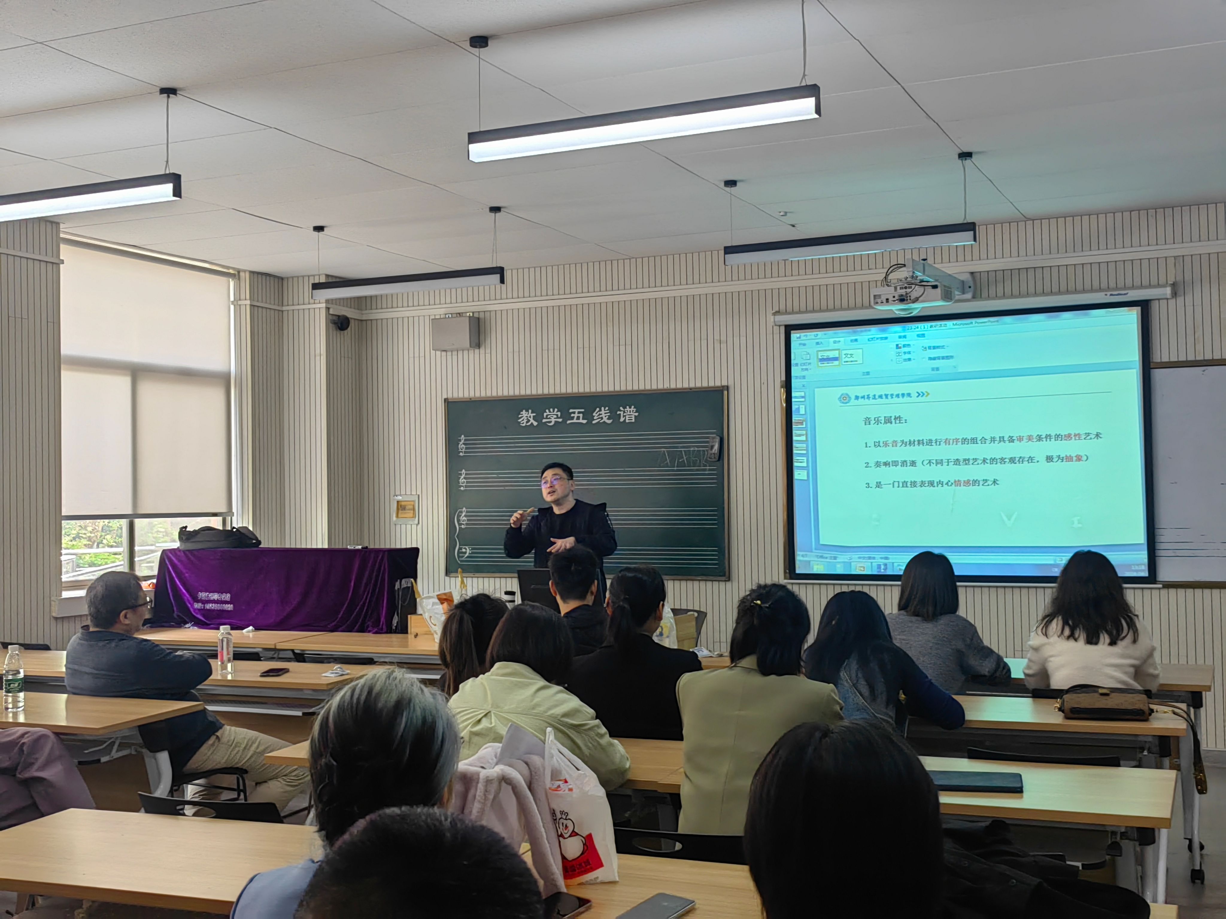王叶老师主要围绕课程内涵、教学内容设计,以及课堂教学心得等方面进行了教学分享。首先,王叶老师根据《基础和声》课程的内涵进行了解读,并引用了19世纪文献中关于“培养音乐的耳朵”的论述:有音乐感的耳朵,能感受形式美的眼睛,确证自己是人的本质力量的感觉,而只有音乐才能激起人的音乐感。通过引经据典的解读,使老师们认识到了《基础和声》作为音乐专业理论课程的基础性与重要性。