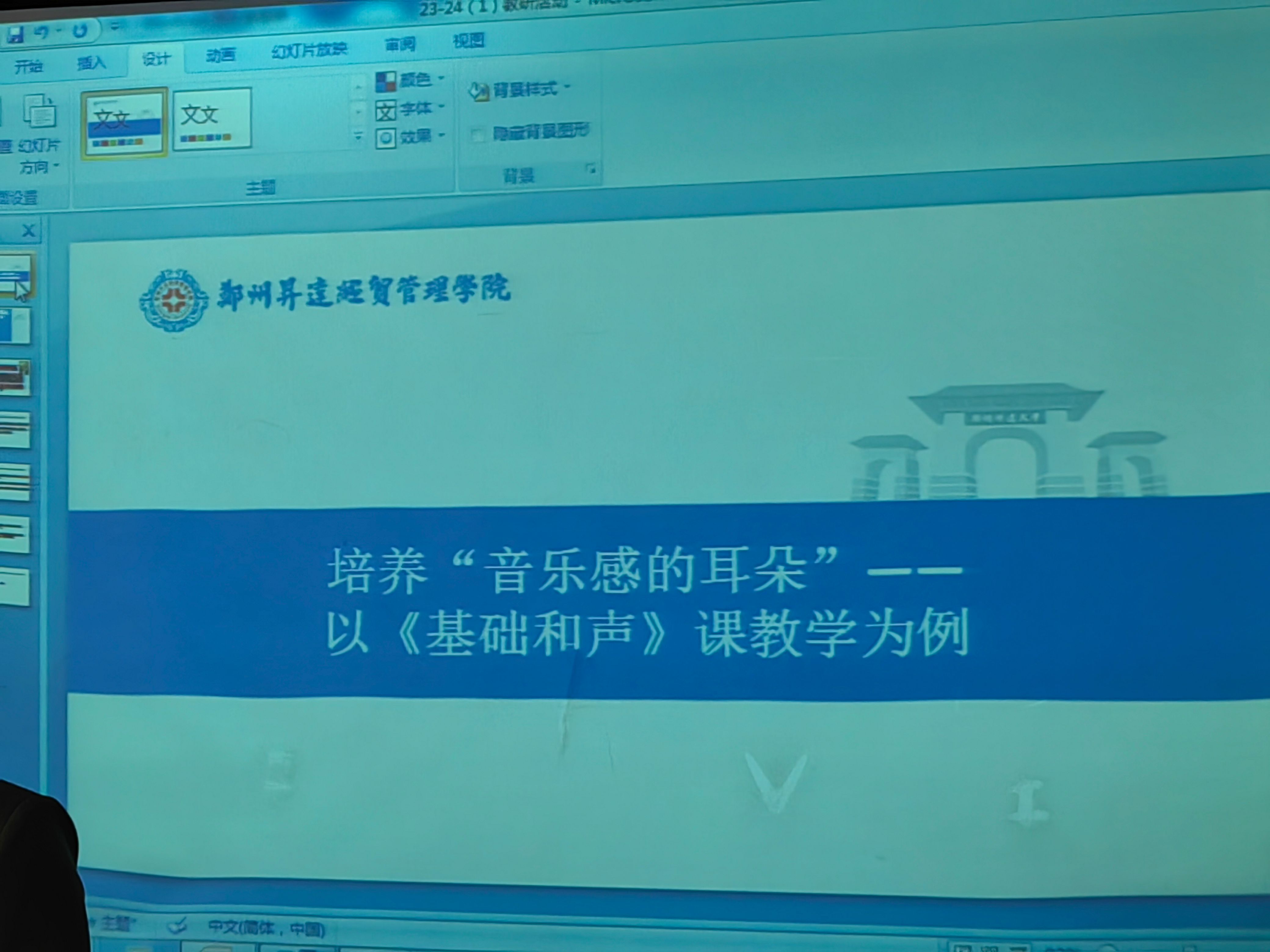 4月11日中午,器乐理论教研室在太阳集团tyc301教室召开教学研讨会,由教研室主任庄严主持,专职教师王叶老师进行了题为《培养“音乐感的耳朵”——以<基础和声>课教学为例》的教学交流汇报,教研室全体教师参加。