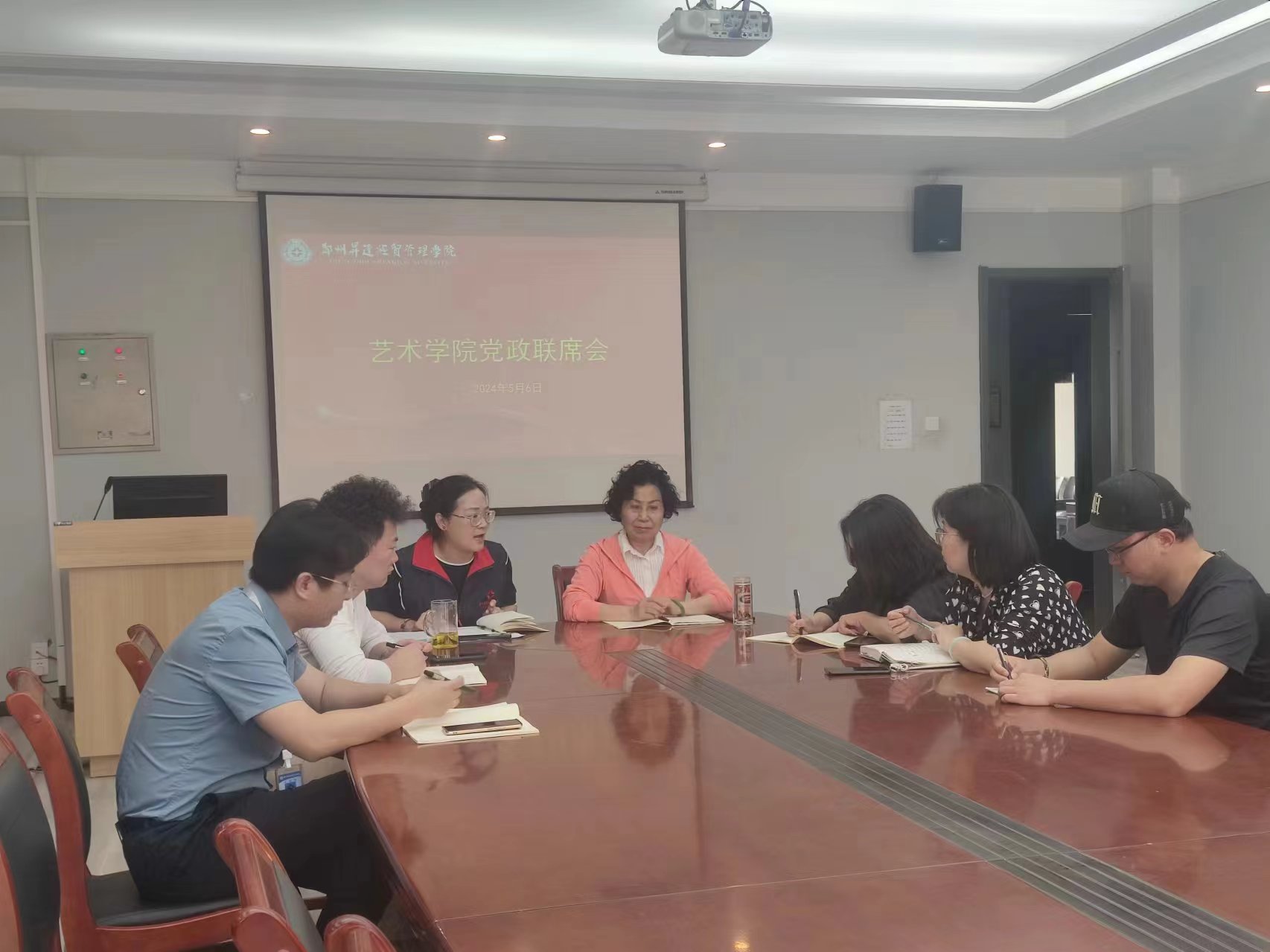 太阳集团tyc于5月6日在艺术楼414会议室召开党政联席会议,学院领导班子成员参加了本次会议。