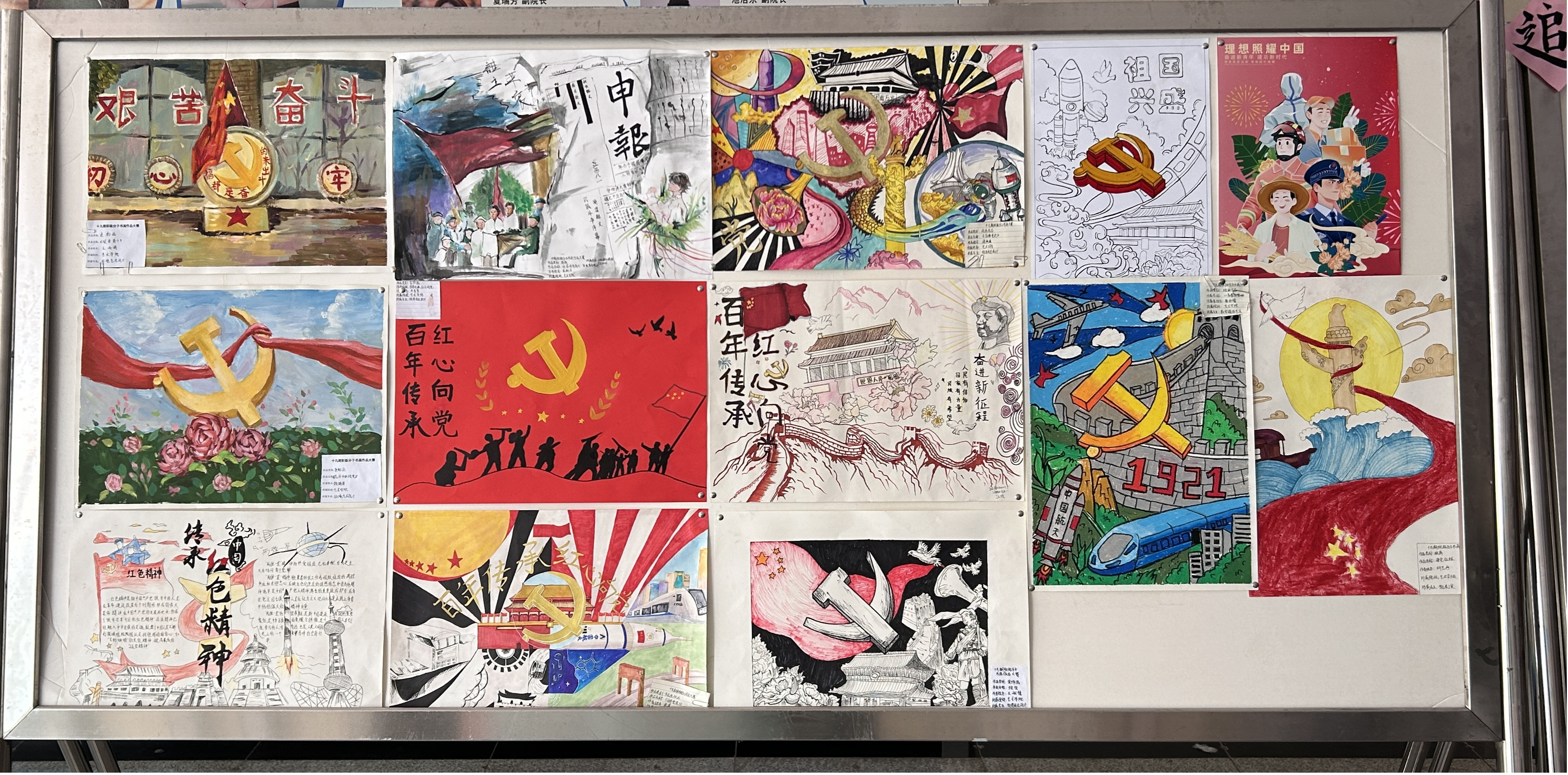 前期通过向同学们积极宣传的形式,收集到的作品内容形式多样,包含油画、海报、色彩画、装饰画等,同学们都纷纷用手中的笔抒发着他们爱党爱国社会主义的满腔热忱,这些绘画作品的场景似乎已经跃然纸上,栩栩如生地展现在了我们面前,以艺术的独特视角表达和传递党的辉煌历程。