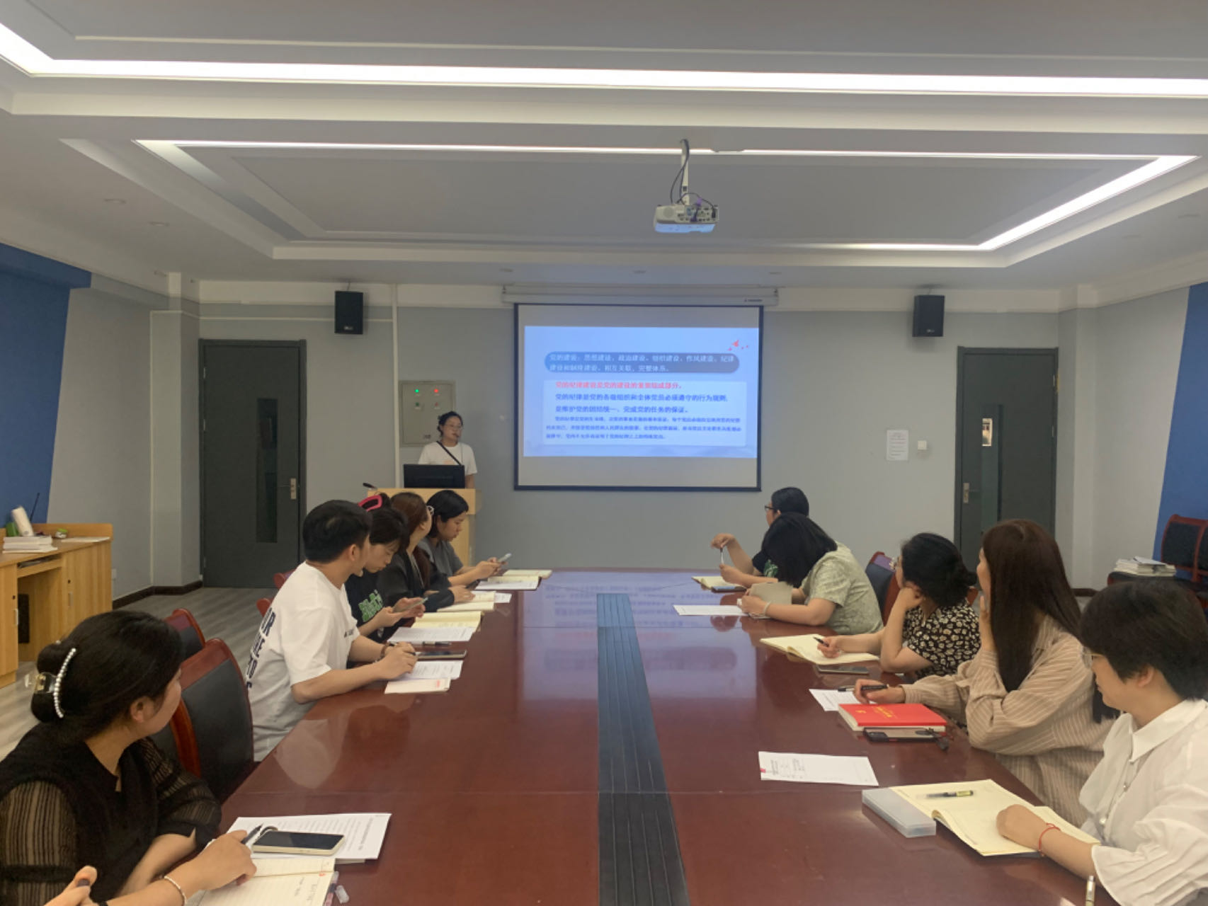 学习开始,党委书记张小雁同志从党规党纪的含义、经典案例以及违纪案例警示教育意义三个部分来讲述党纪学习的重要性。张小雁书记在党课中通过典型案例帮助大家加深对党纪的深刻理解、提升党性修养,不断教育引导广大党员干部学纪、知纪、明纪、守纪。接着,张小雁书记通过播放《党章党规党纪有什么区别》教育视频,引导广大党员坚定理想信念,强化纪律意识和规矩意识。