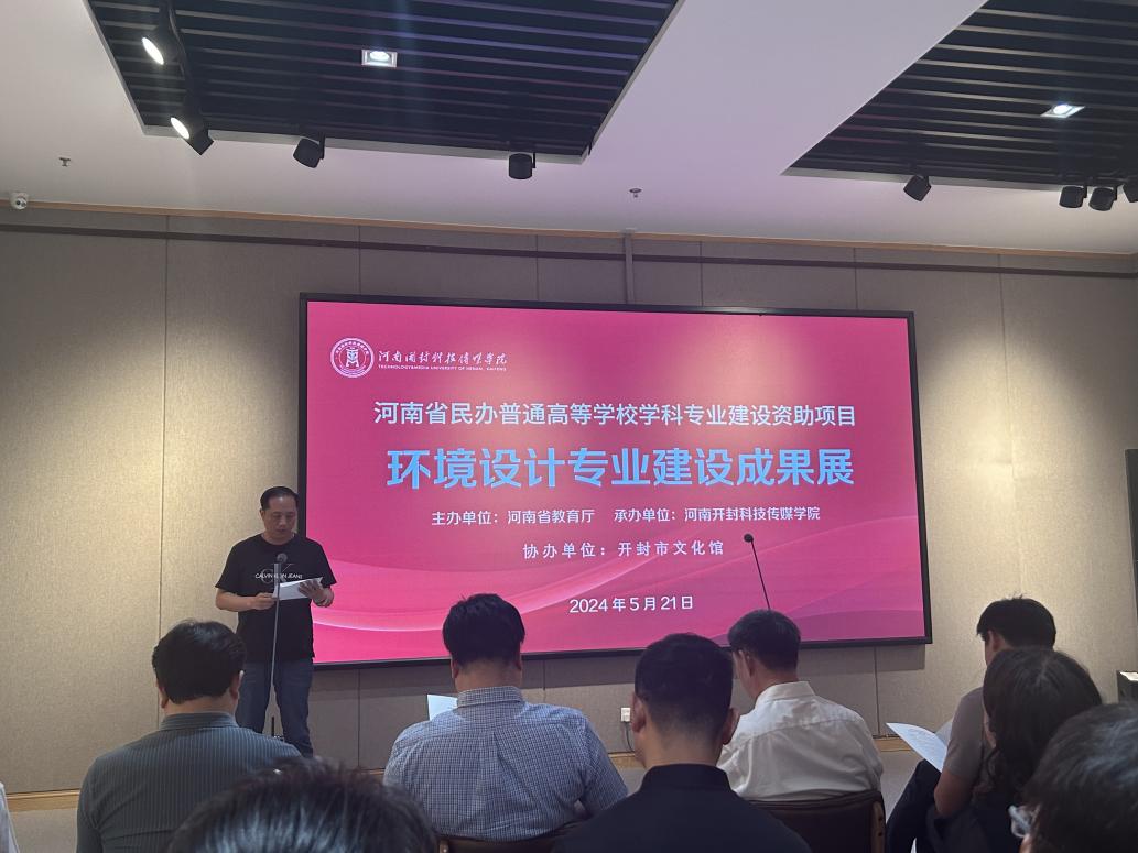 5月21日上午,太阳集团tyc环境设计教研室主任安赛老师和姜新宇老师应邀参加了河南开封科技传媒学院在开封市文化馆举办的环境设计专业资助项目建设成果展。参加本次活动的人员有河南省教育厅政策法规处(民办教育处)处长徐军宝,河南开封传媒学院校领导、教师及员工代表,河南省民办高校代表及部分企业代表。