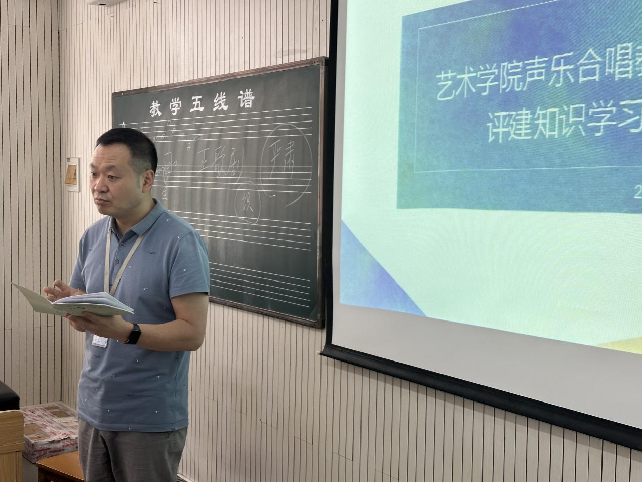 最后,杜亮主任总结了本次会议的成果,强调了此次审核评估的重要性,鼓励教研室全体教职员工团结协作,共同致力于声乐合唱教研室教学的发展与创新。