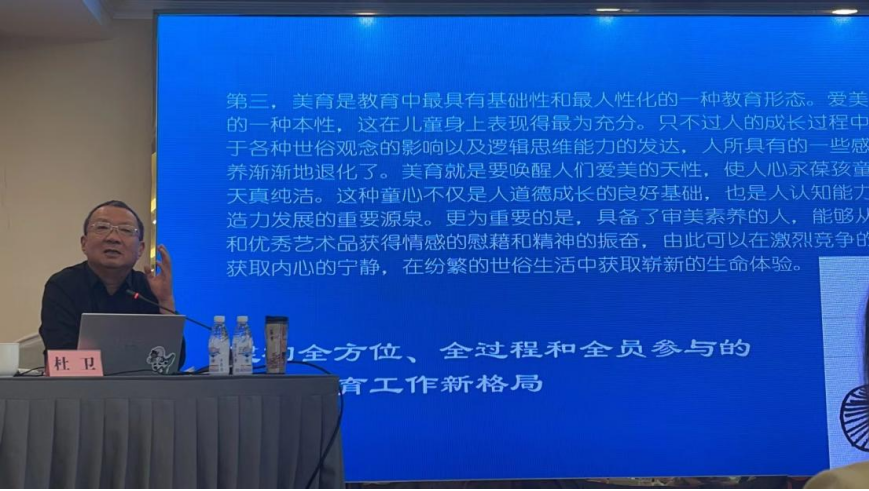 杭州师范大学教授,曾任杭州师范大学董事长,第十三届全国政协常委。现任教育部高校美育教指委副主任委员,中华美学学会副会长,中国高教学会美育专委会理事长,中国美术学院美育研究院经理杜卫博士“坚持立德树人,遵循美育特点,建构全方位、全过程和全员参与的学校美育工作新格局”。