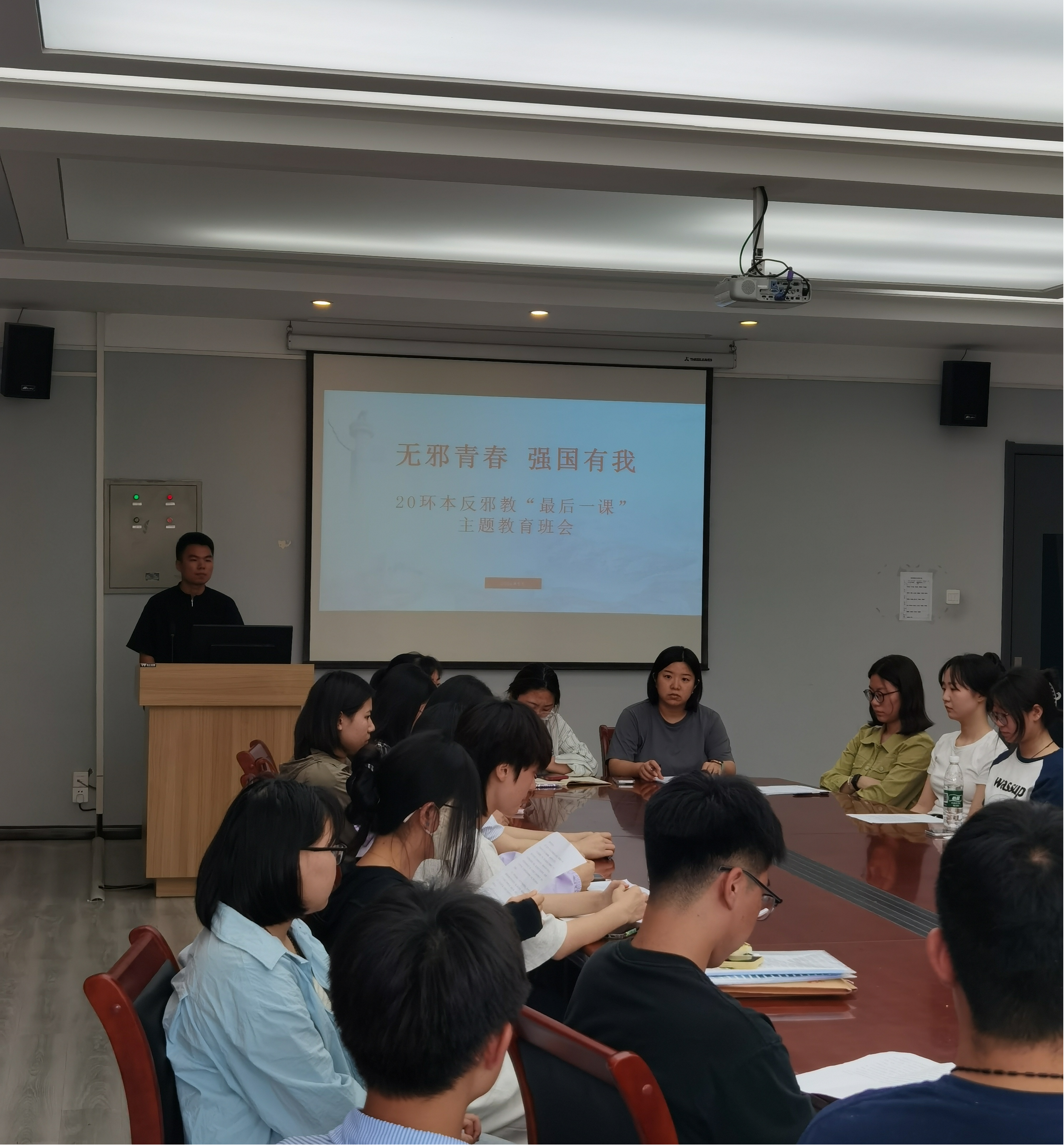 此次活动以“无邪青春 强国有我”为主题,会议开始,辅导员老师向同学们宣讲什么是邪教,邪教的本质等内容,教育引导员工认清邪教的危害,增强识邪,防邪的意识和能力,增强国家安全观念。其次,辅导员老师们从邪教的危害和如何抵制邪教的侵害两个方面进行了细致的阐述,并通过以案说法,列举了国内外邪教组织造成的社会性案件,揭露了邪教破坏家庭,危害社会,残害生命等本质,提醒毕业生们要树立法制观念,注意识别和防范,预防邪教组织的侵害。最后,辅导员老师向同学们发出倡议,同学们要深刻认识到邪教组织的欺骗性和危害性,增强防范邪教组织的意识。要积极崇尚科学,不信奉迷信,自觉抵制各类邪教组织的引诱,与各类邪教组织作坚决斗争。