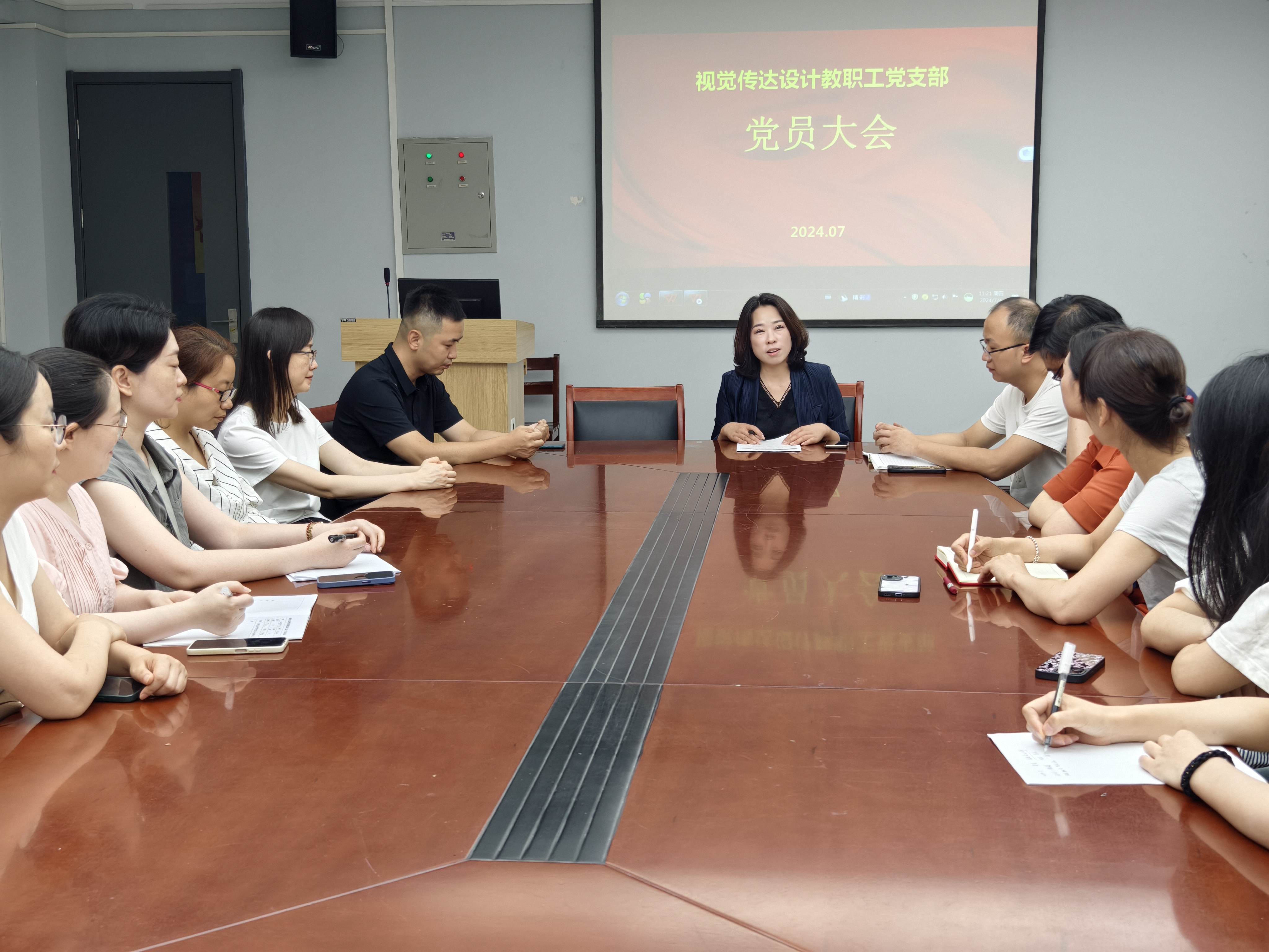 7月4日,视觉传达设计教研室党支部于艺术楼411会议室召开换届选举大会,会议由原党支部书记夏瑞芳主持,支部全体党员同志参加了大会。