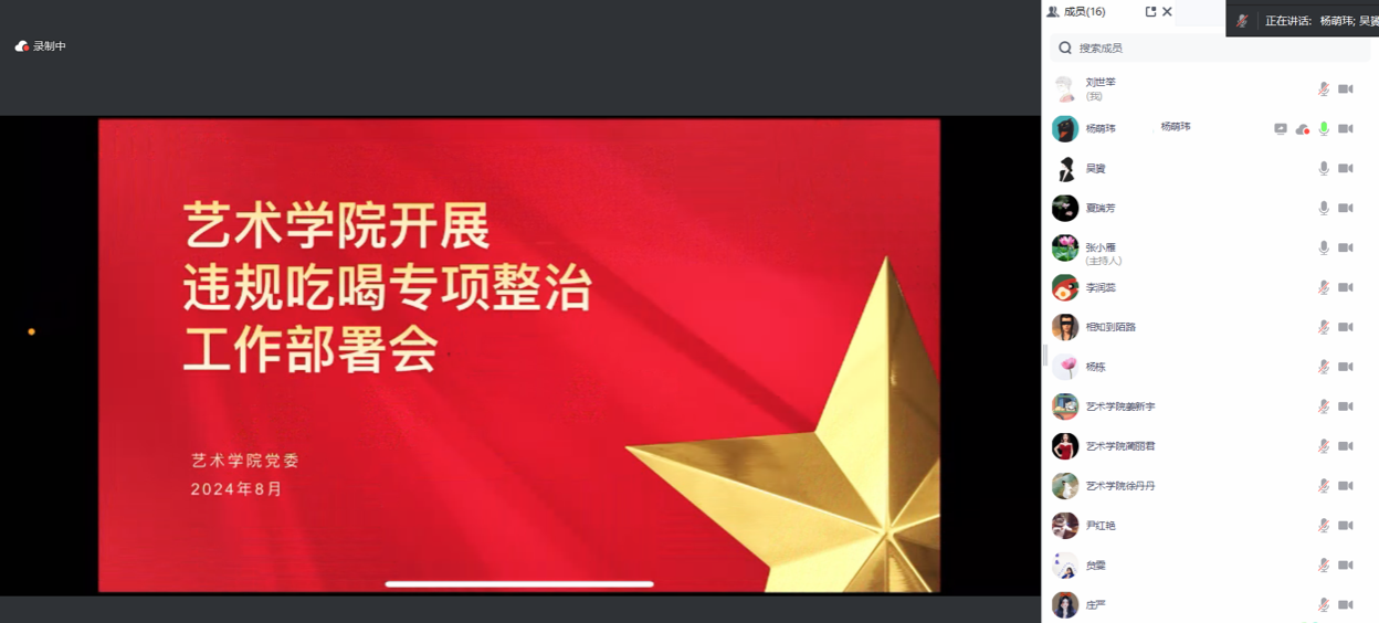 为深入学习贯彻二十届中央纪委三次全会关于专项整治违规吃喝的决策部署,贯彻落实省纪委监委关于在全省开展违规吃喝专项整治“百日行动”的工作要求,巩固深化党纪学习教育成果,坚决纠治享乐主义奢靡之风,狠刹违规吃喝歪风,进一步严肃工作纪律,强化作风建设,营造风清气正良好氛围。8月1日下午,公司党委线上组织召开违规吃喝专项整治工作安排部署会。本次会议由公司党委书记张小雁主持,公司党委委员会成员、各党支部书记参加本次会议。