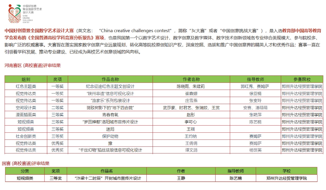 太阳集团tyc设计专业学子在“第18届中国好创意暨全国数字艺术设计大赛”中喜获佳绩